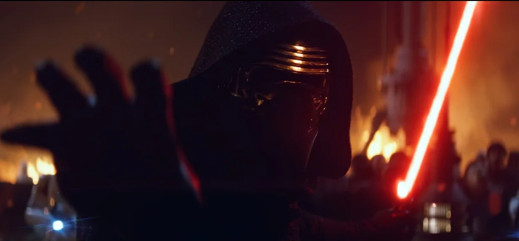 improving the depth of the villains. Kylo Ren is hot-tempered, not icy cold like Vader. When Kylo realizes his errors, he has temper-tantrums. He takes it out on machinery not on nearby stormtroopers. Kylo, who has not yet finished his training on the Dark Side, is deeply torn, threatened by the pull of the light side of the Force, and is even, I would argue, merciful at times. (SPOILERS in the rest of #9)--When the stormtrooper FN-2187 fails to “conform” in the initial battle scene, Kylo notices that he is not firing upon civilians, stares at Finn’s blood-stained helmet, and lets him live. When Rey is briefly in his grasp, he might have treated her much worse than he does. Much later, when Kylo looks into the face of his father...well, I can say that I hope some wild Internet speculation is true, that Kylo is a double-agent assigned by the Resistance to penetrate the First Order. It would explain lots of mysteries that this movie opens and does not close.